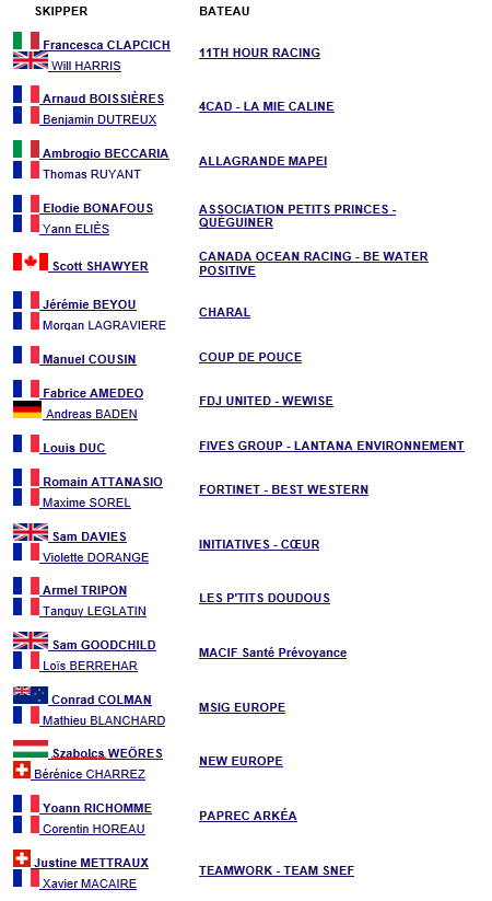 L’arrivée sera à Fort de France en Martinique en novembre.