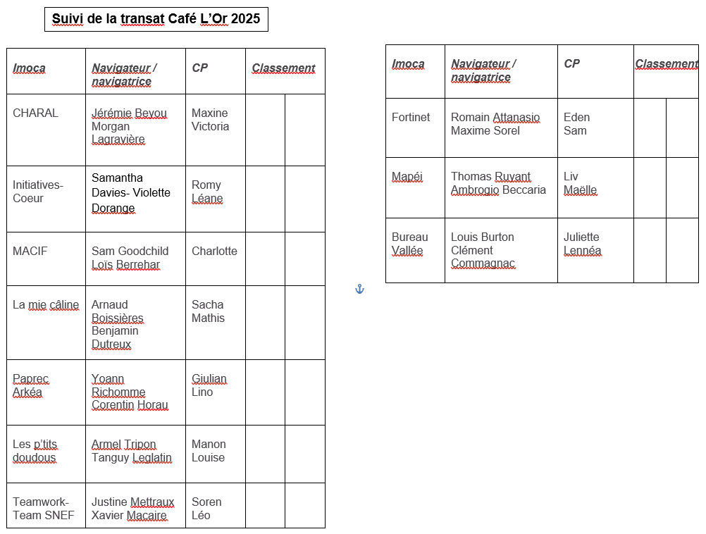 Notre classe suit une course de bateaux : la transat café l’Or.